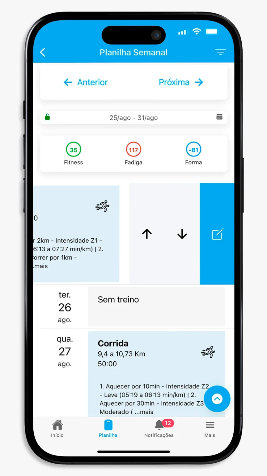 Todos os treinos diretamente no celular. Com sincronização direto para seu relógio. Seja treino de corrida, fortalecimento ou até musculação!